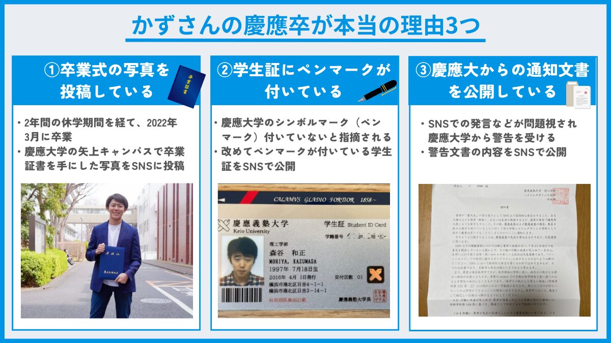 これらの疑惑に対して森谷和正さんは、慶應大からの通知書や卒業証書を公開するなどして、きちんと事実の説明をしています。