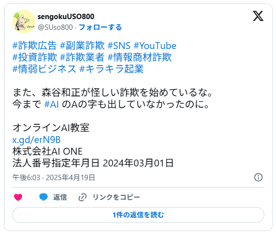 AI ONEは怪しい?森谷和正と会社の実態を本音で見てみた