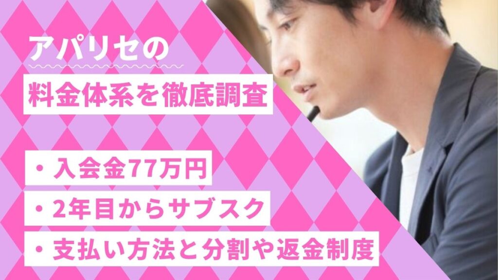 アパリセの入会金は77万円と決して安くありませんが、サポート体制やコンテンツの充実度を考えると、それに見合った価値を感じる方もいるようです。