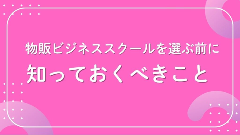- 物販ビジネススクールを選ぶ前に知っておくべきこと