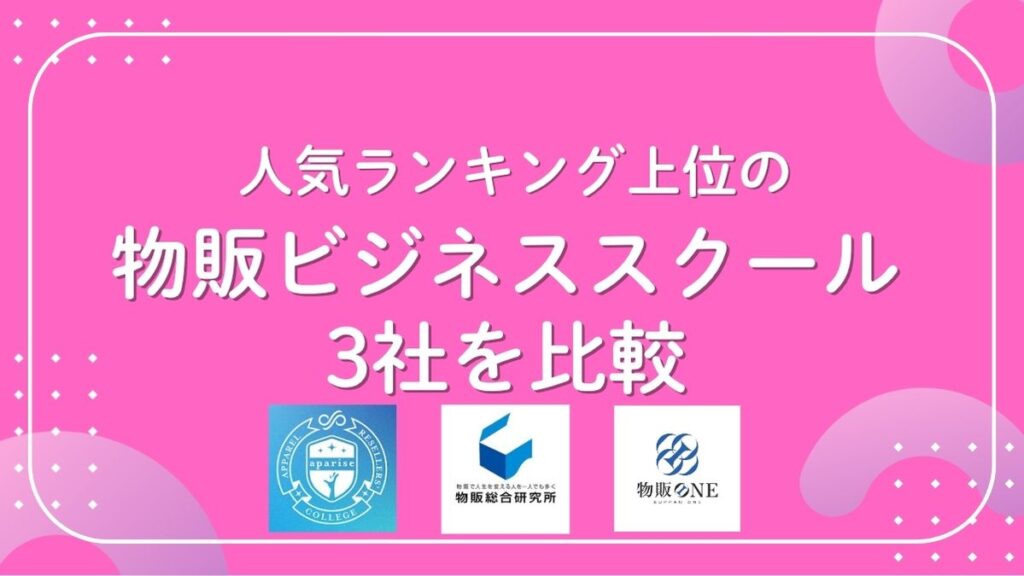 この記事を読めば、人気の高い3つの物販スクール(アパリセ・物販総合研究所・物販ONE)やそれぞれの特徴やサポート、そして選び方のポイントまでわかります。