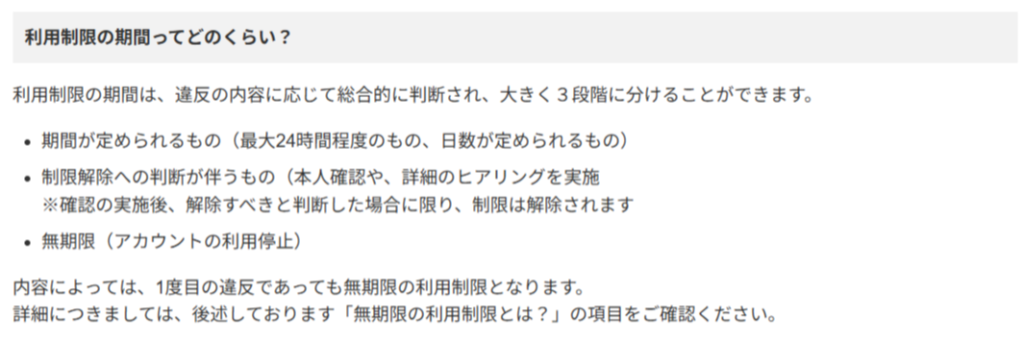 制限の内容にも段階があり、数時間だけ使えなくなる軽いものから、数日ほど様子を見るケースまでいろいろあります。