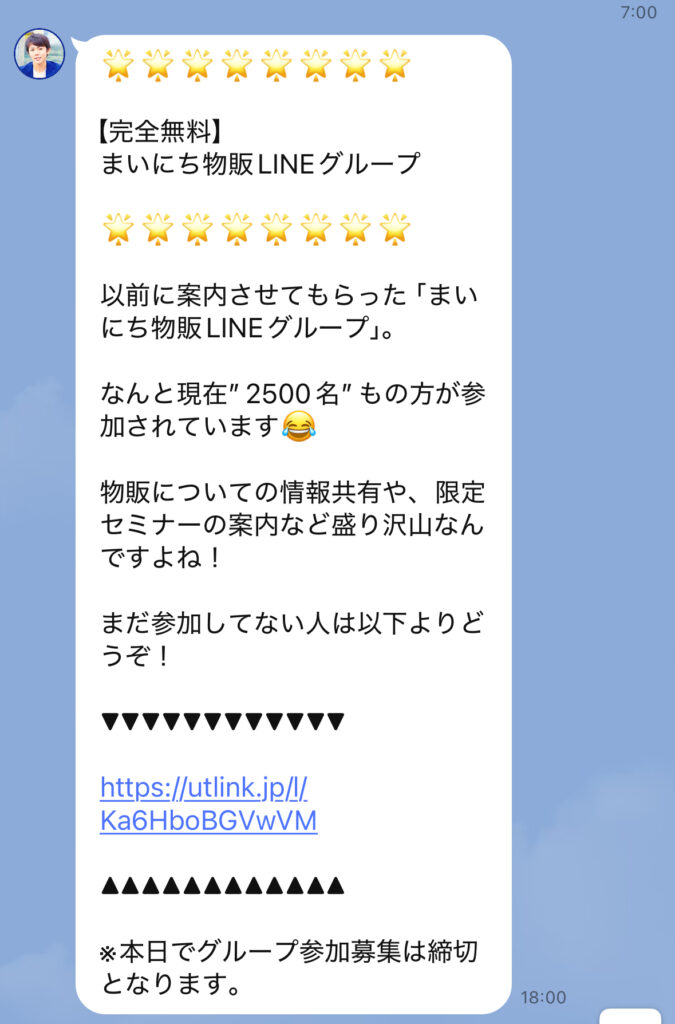 また、LINE登録者限定で「まいにち物販LINE」に参加することも可能。