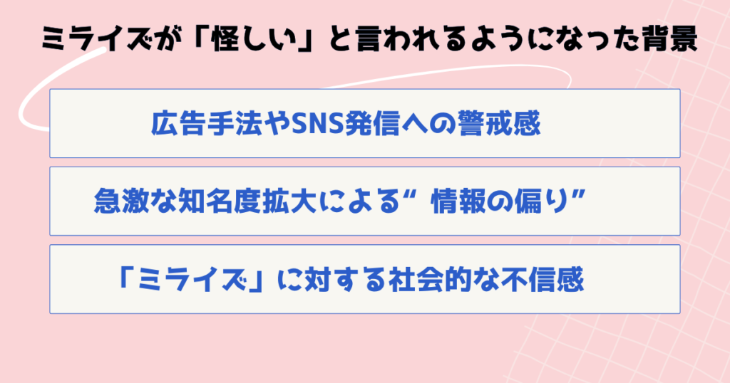 背景①:ミライズの怪しいといわれる広告手法やSNS発信への警戒感