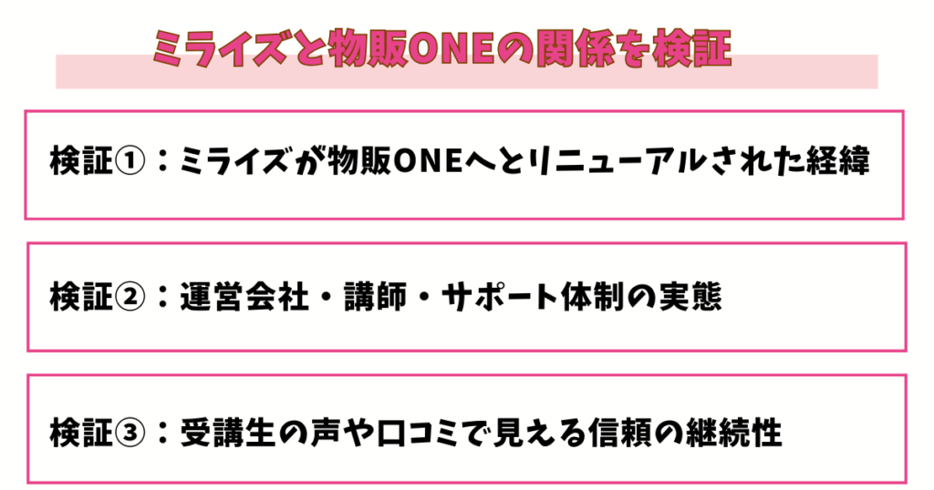 正確には、ミライズは「物販ONE」として再スタートし、信頼性の高い学習環境を提供しています。