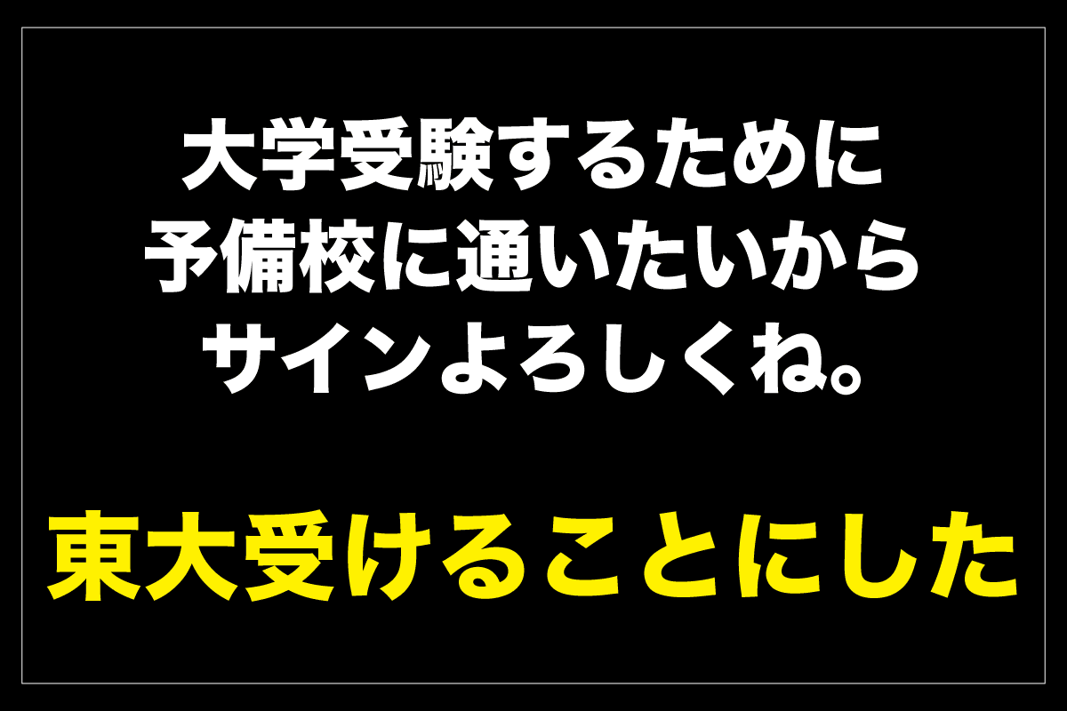 「お前らがどっちも高卒で頭が悪いから、僕が受験に落ちたんだ。」